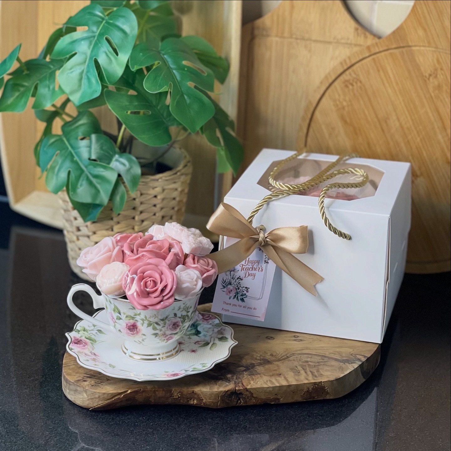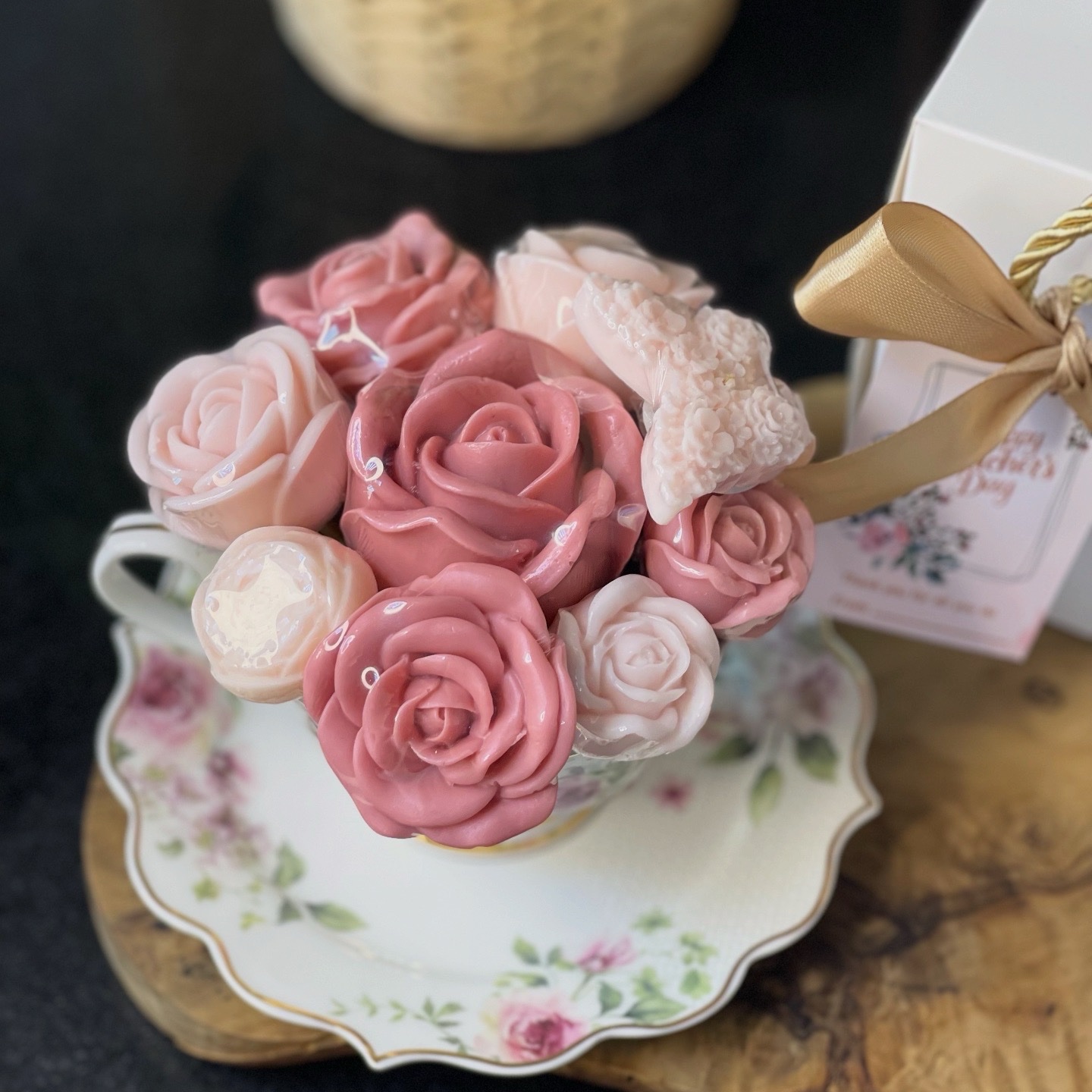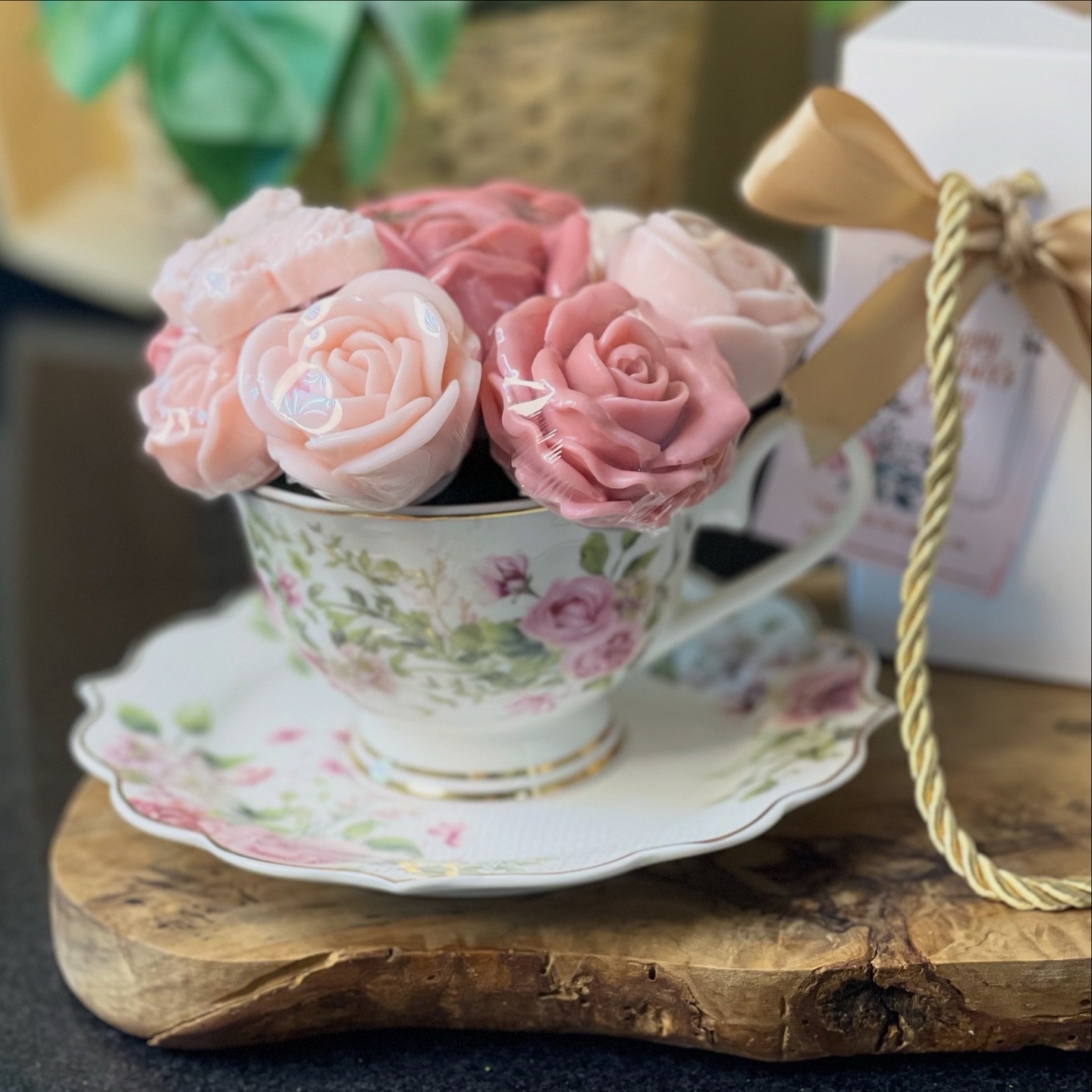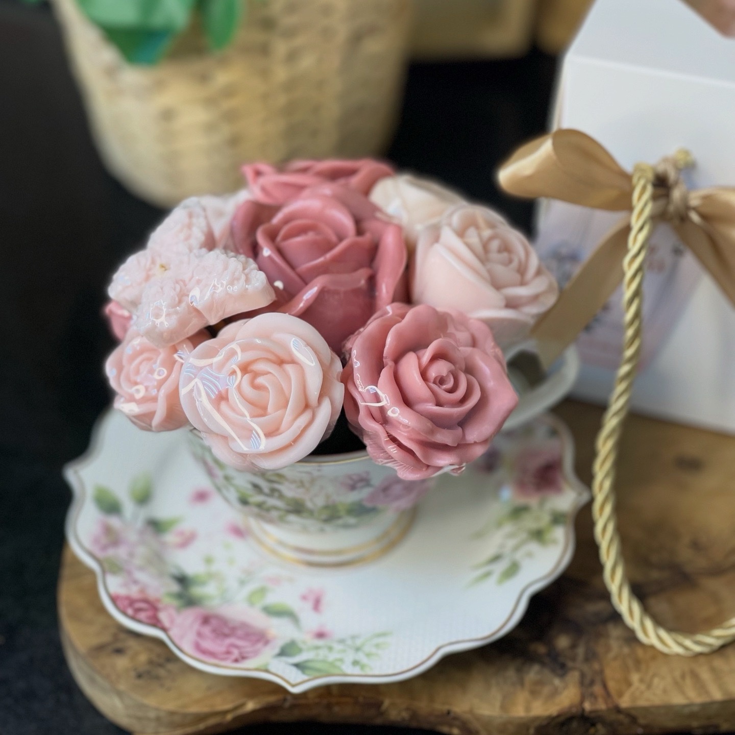 فنجان مع باقة ورد من الصابون المعطر المصنوع من اجود انواع الصابون
