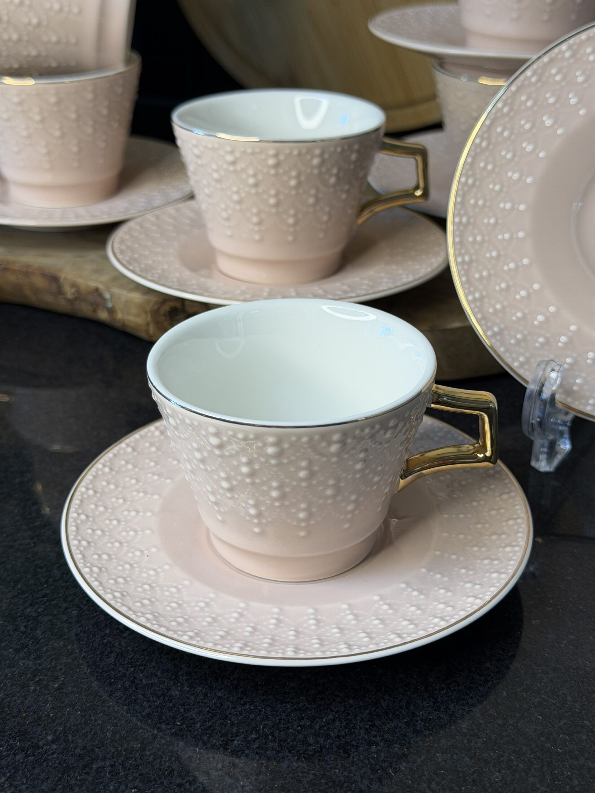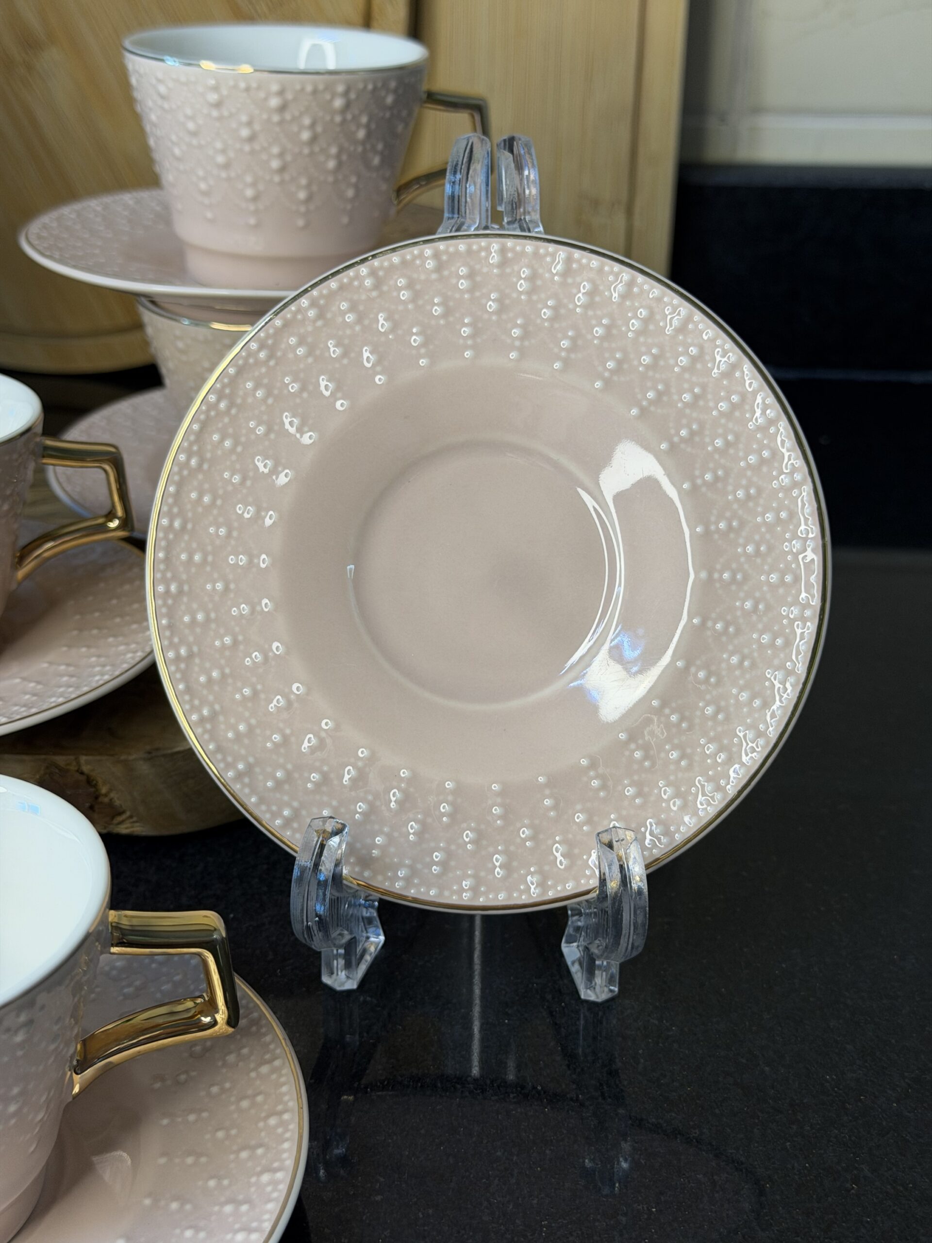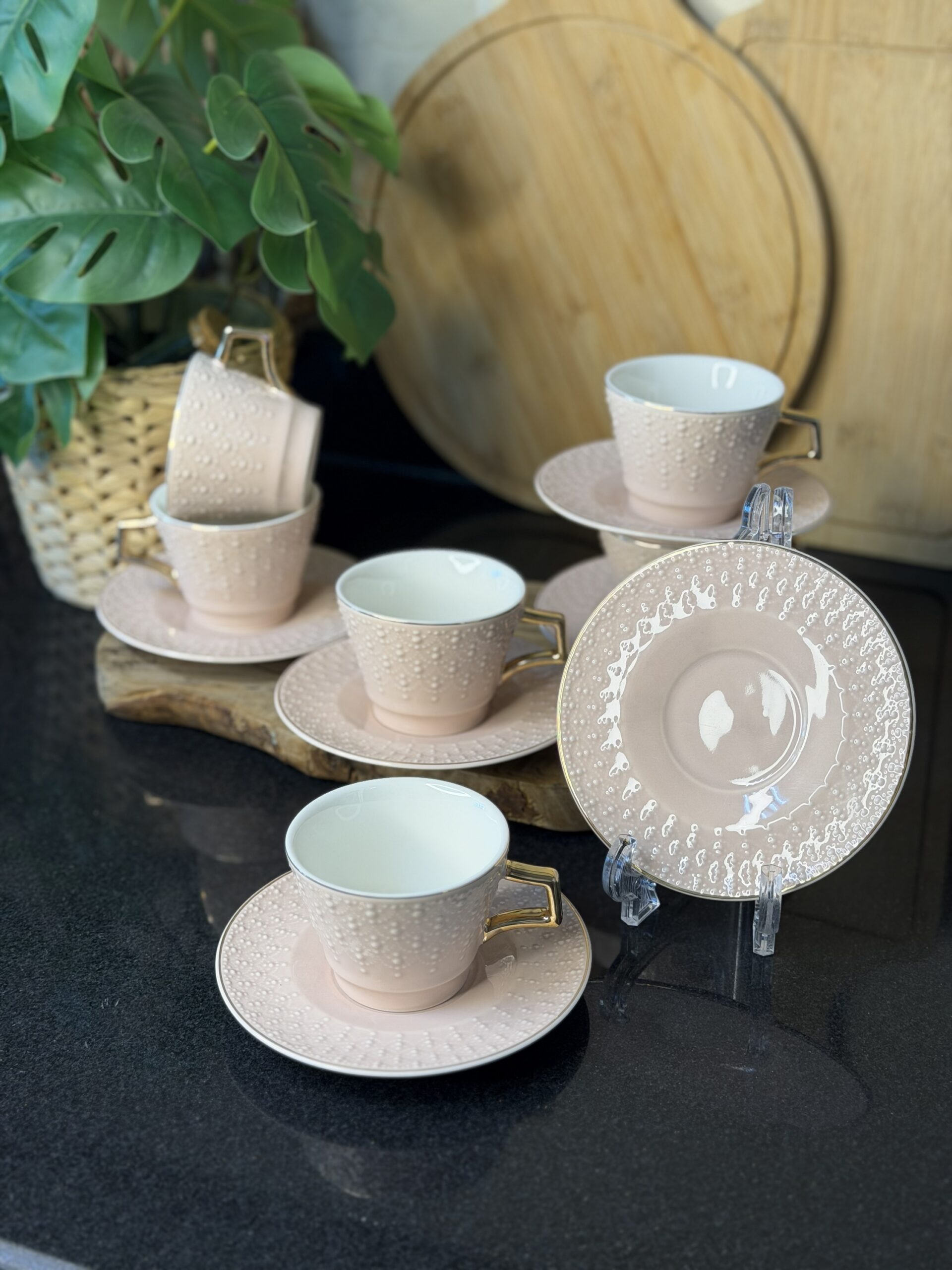 Be the first to review “عدد 6 فناجين قهوة مزخرفة – لون نود”