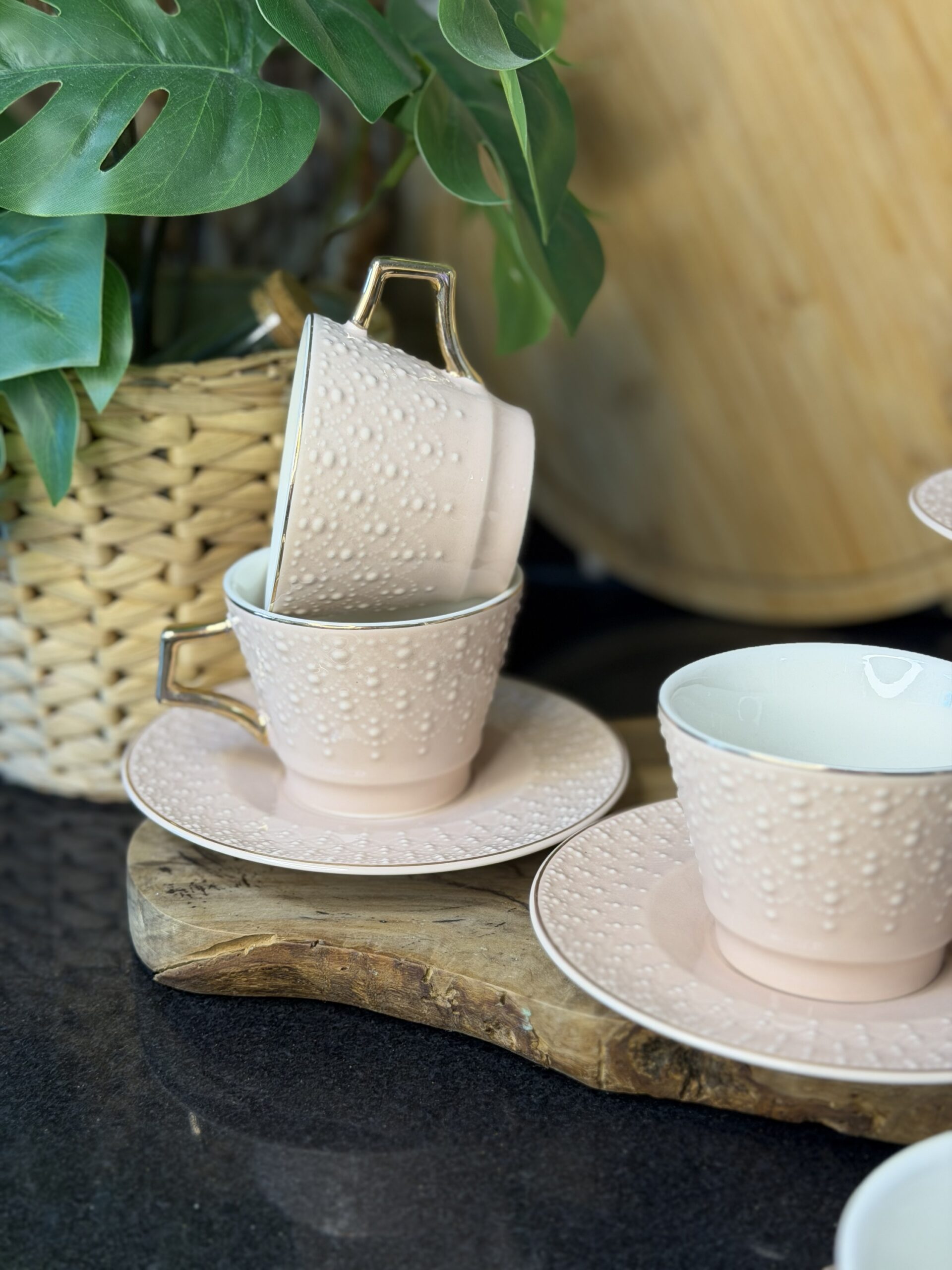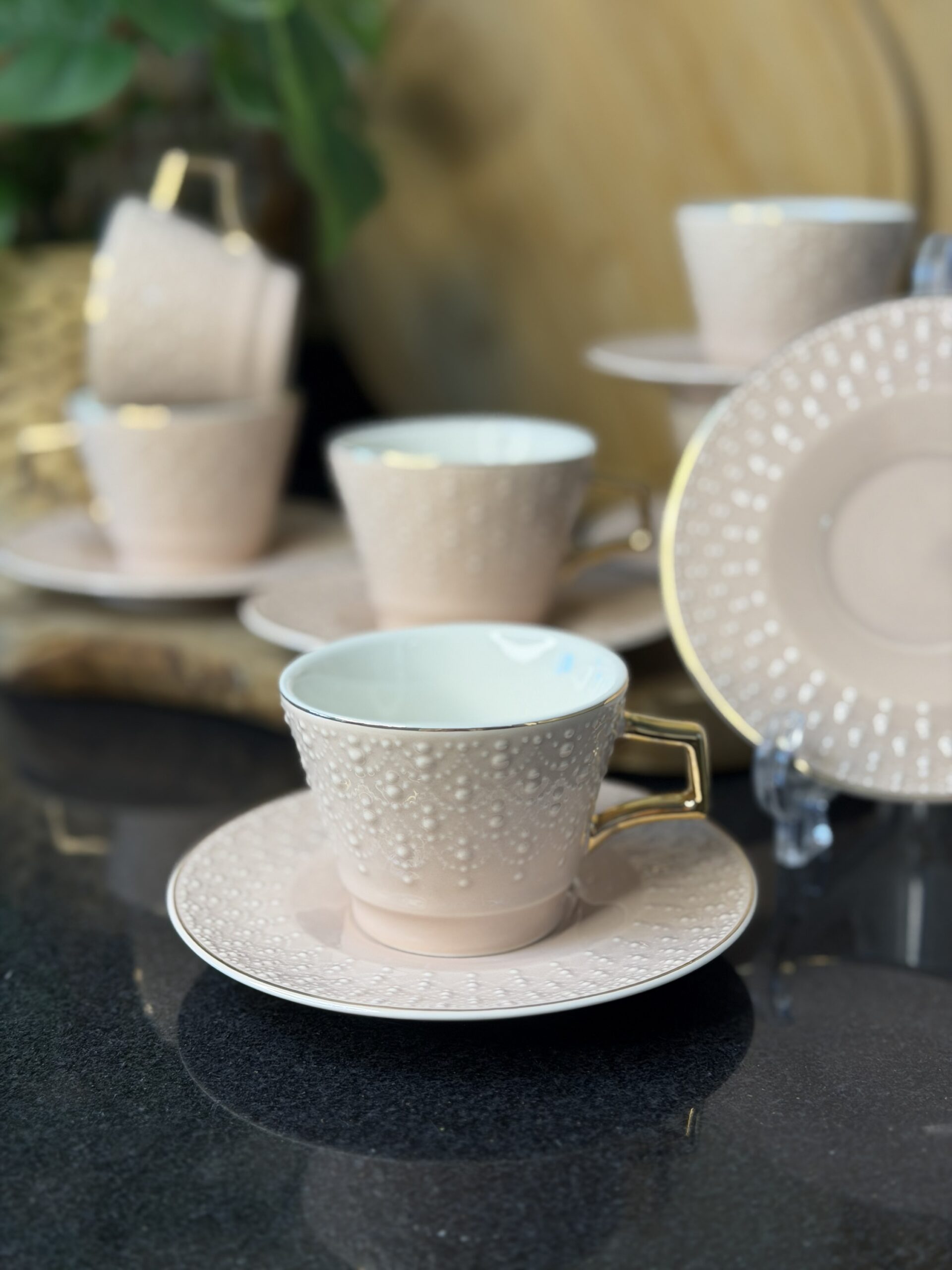 عدد 6 فناجين قهوة مزخرفة – لون نود