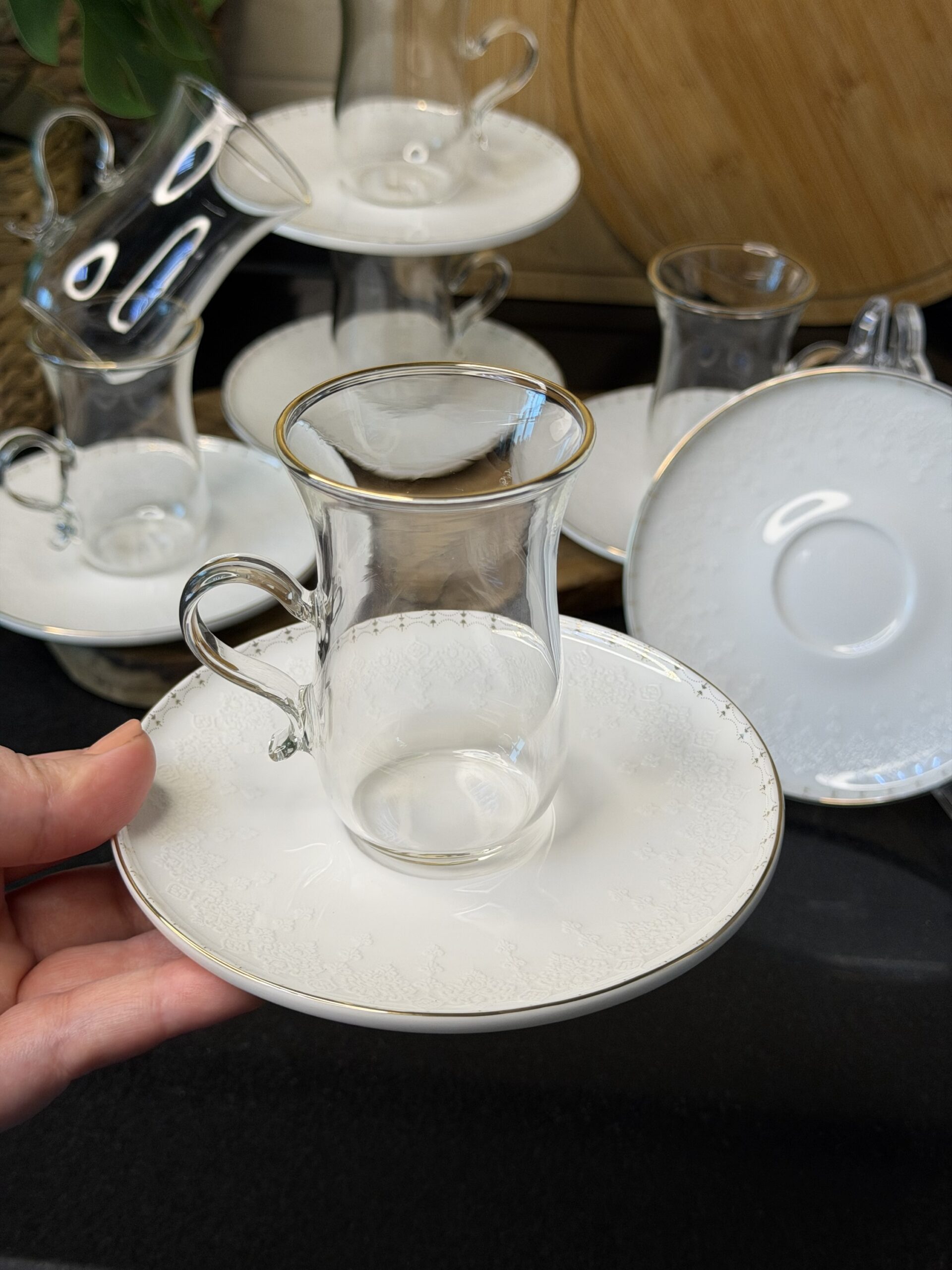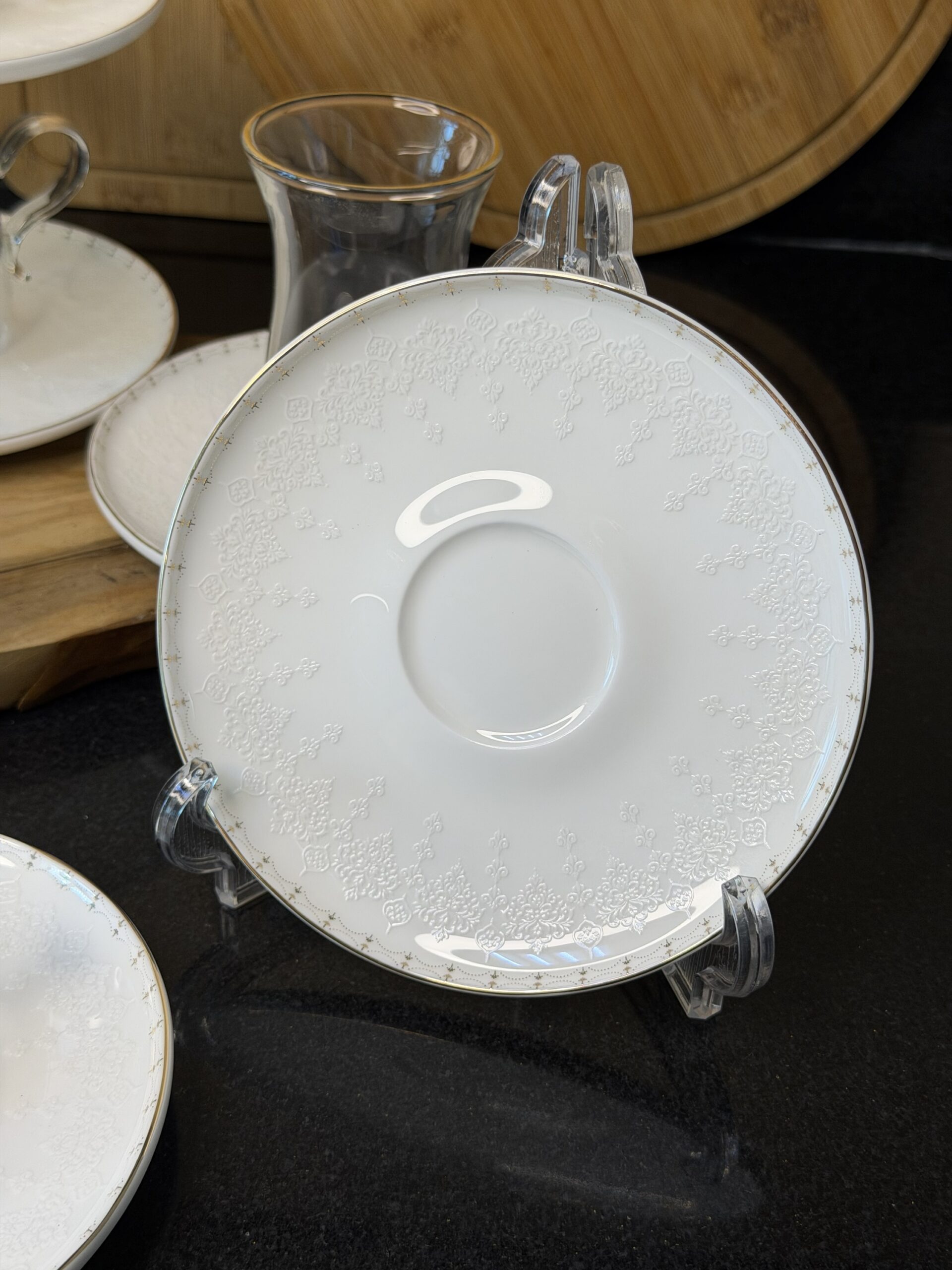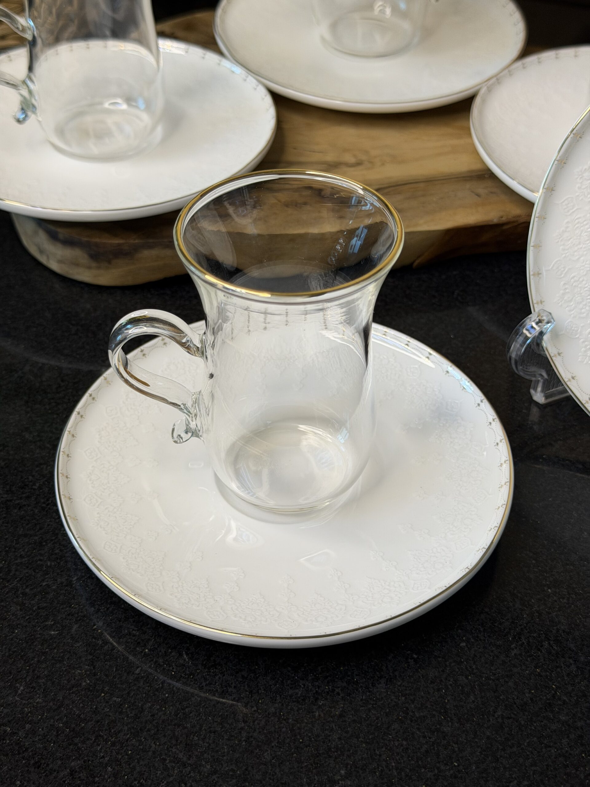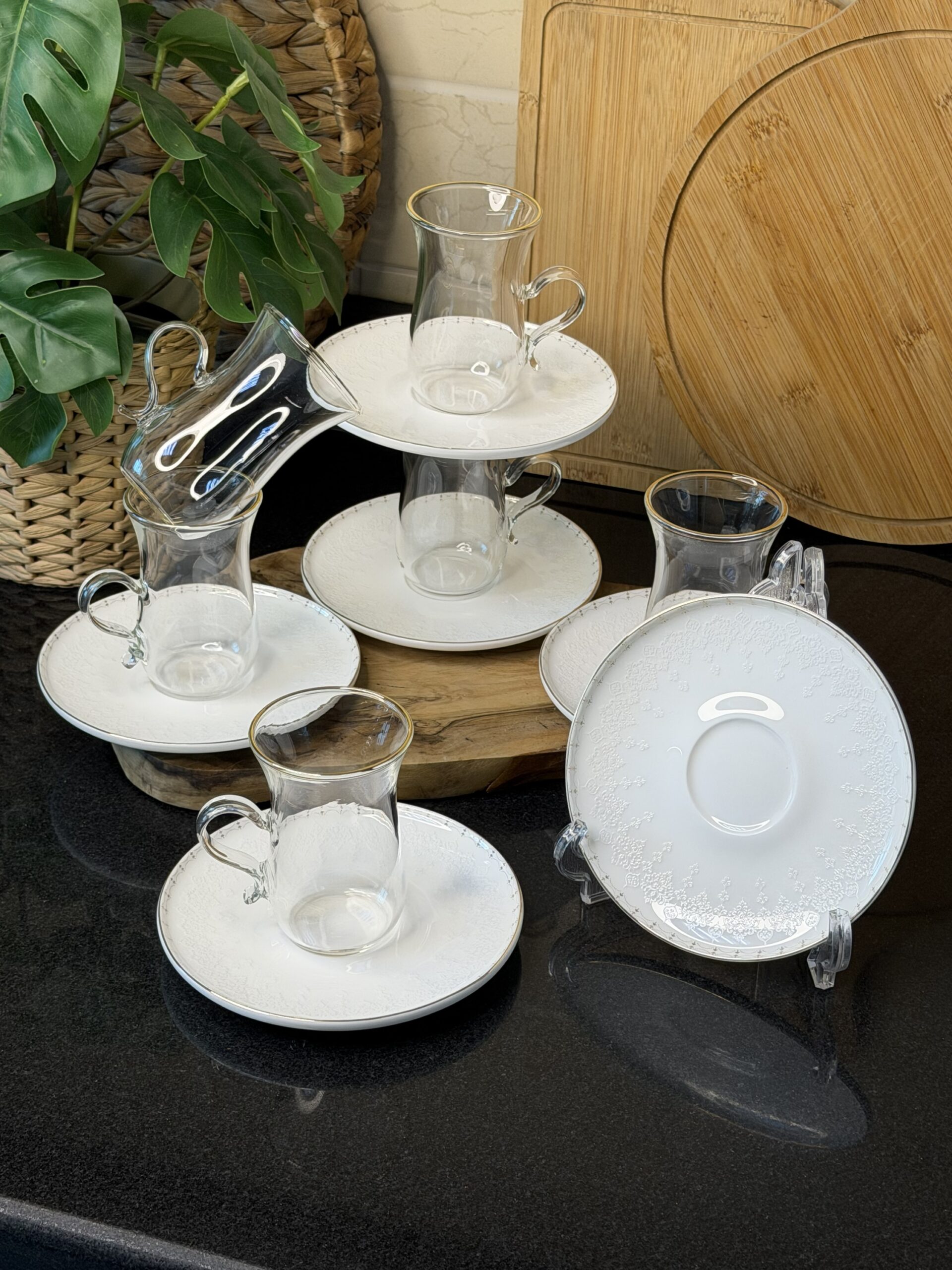 A مجموعة دانتيل – عدد 6 كاسات شاي مع صحون