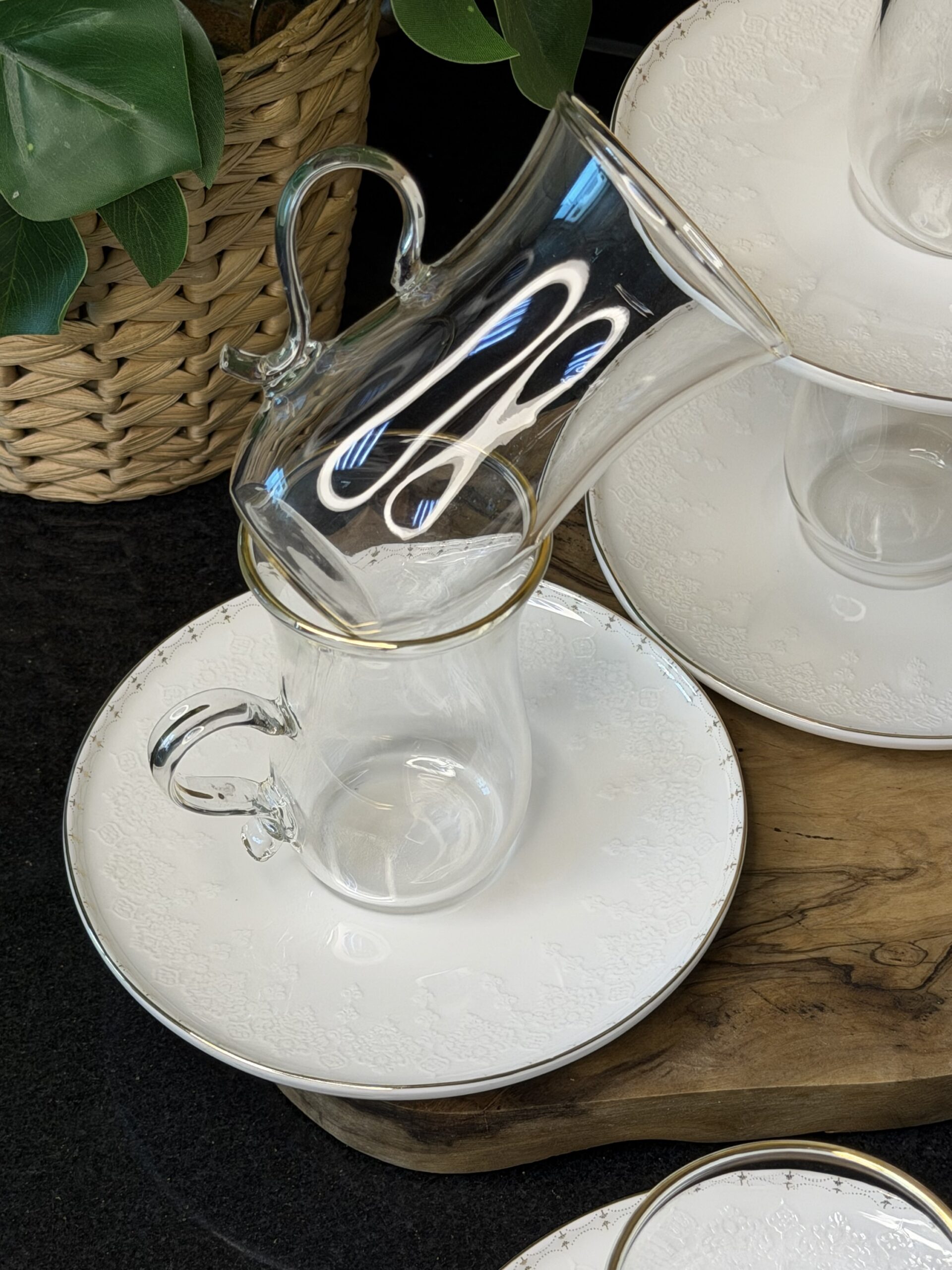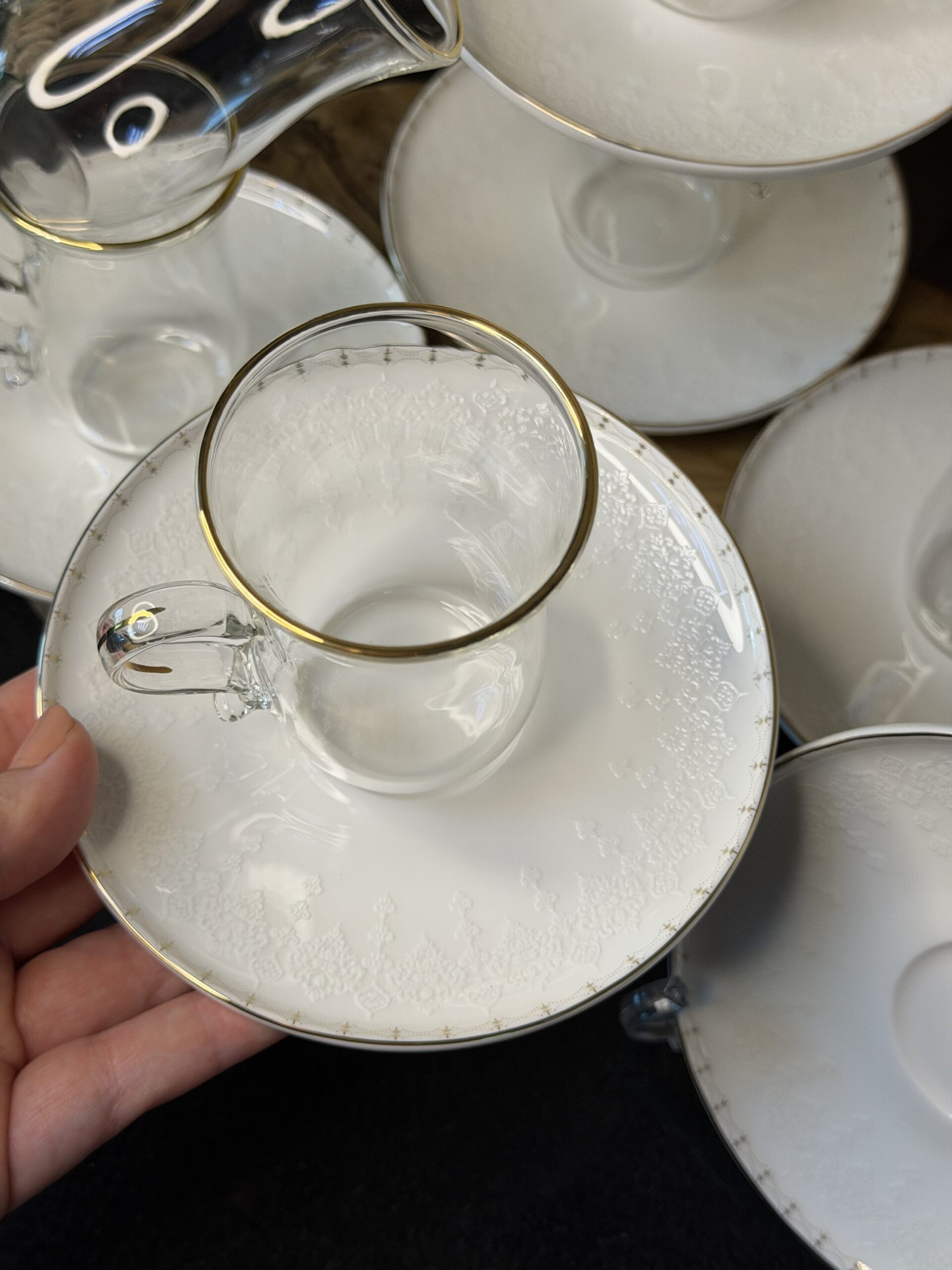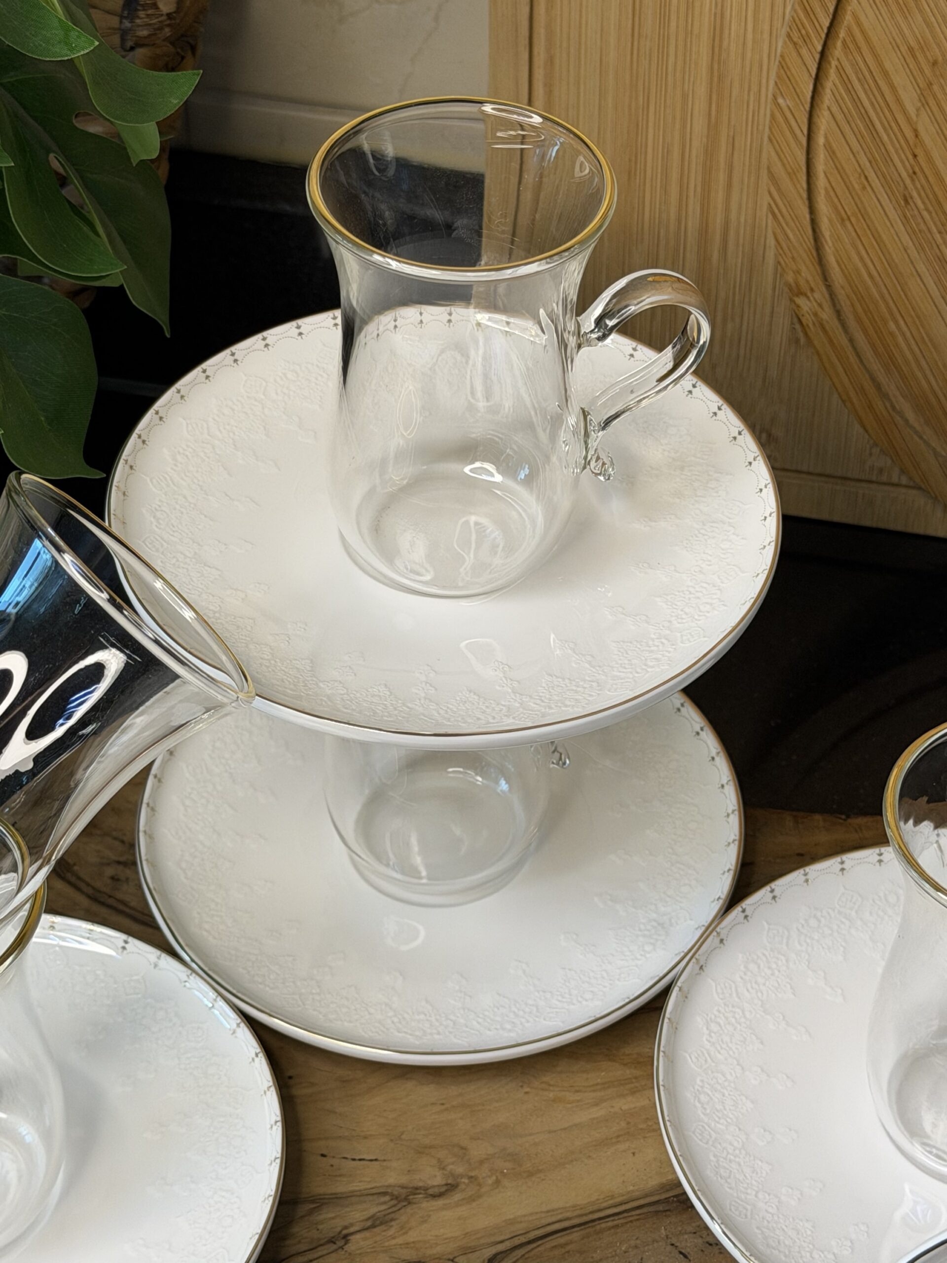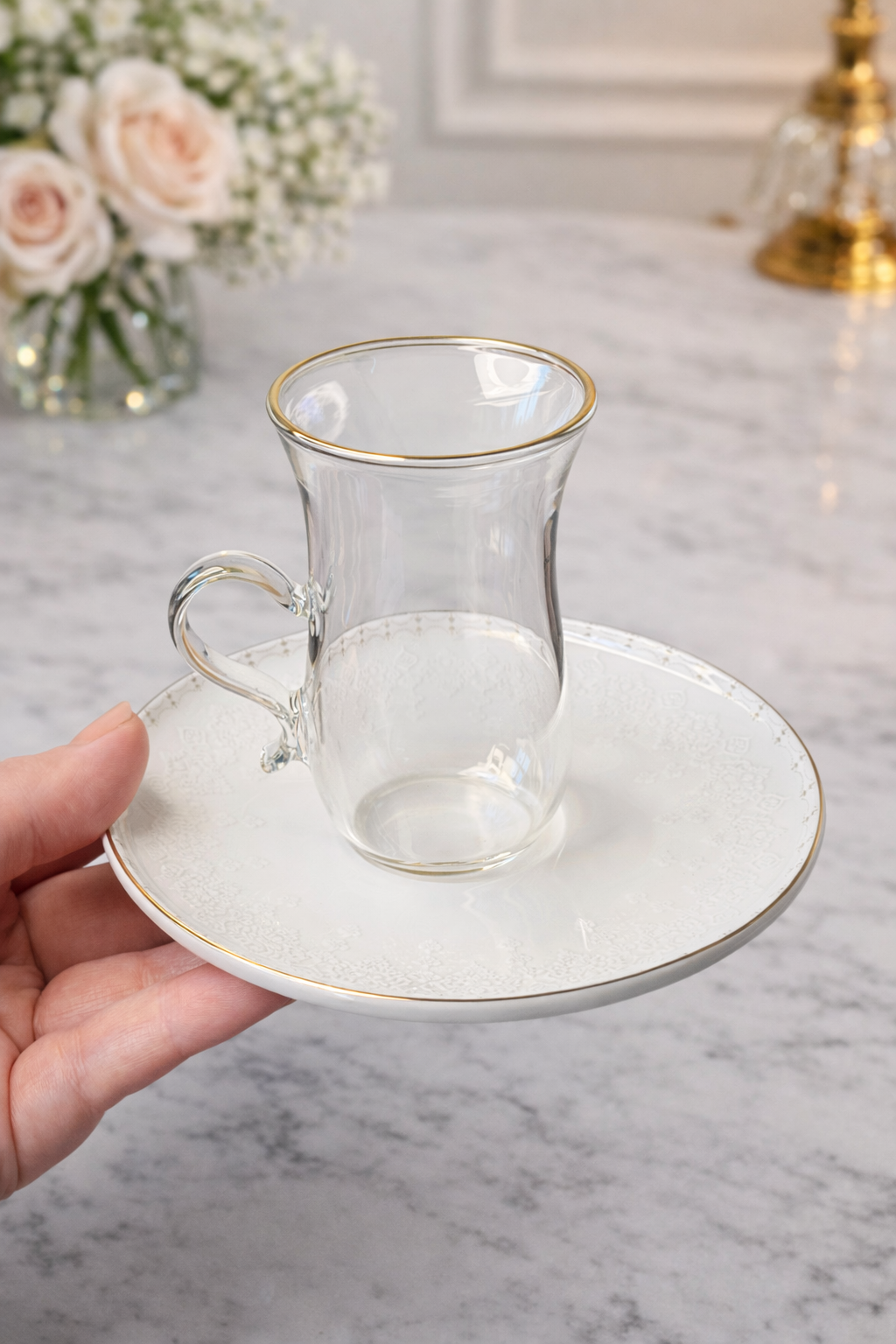 A مجموعة دانتيل – عدد 6 كاسات شاي مع صحون
