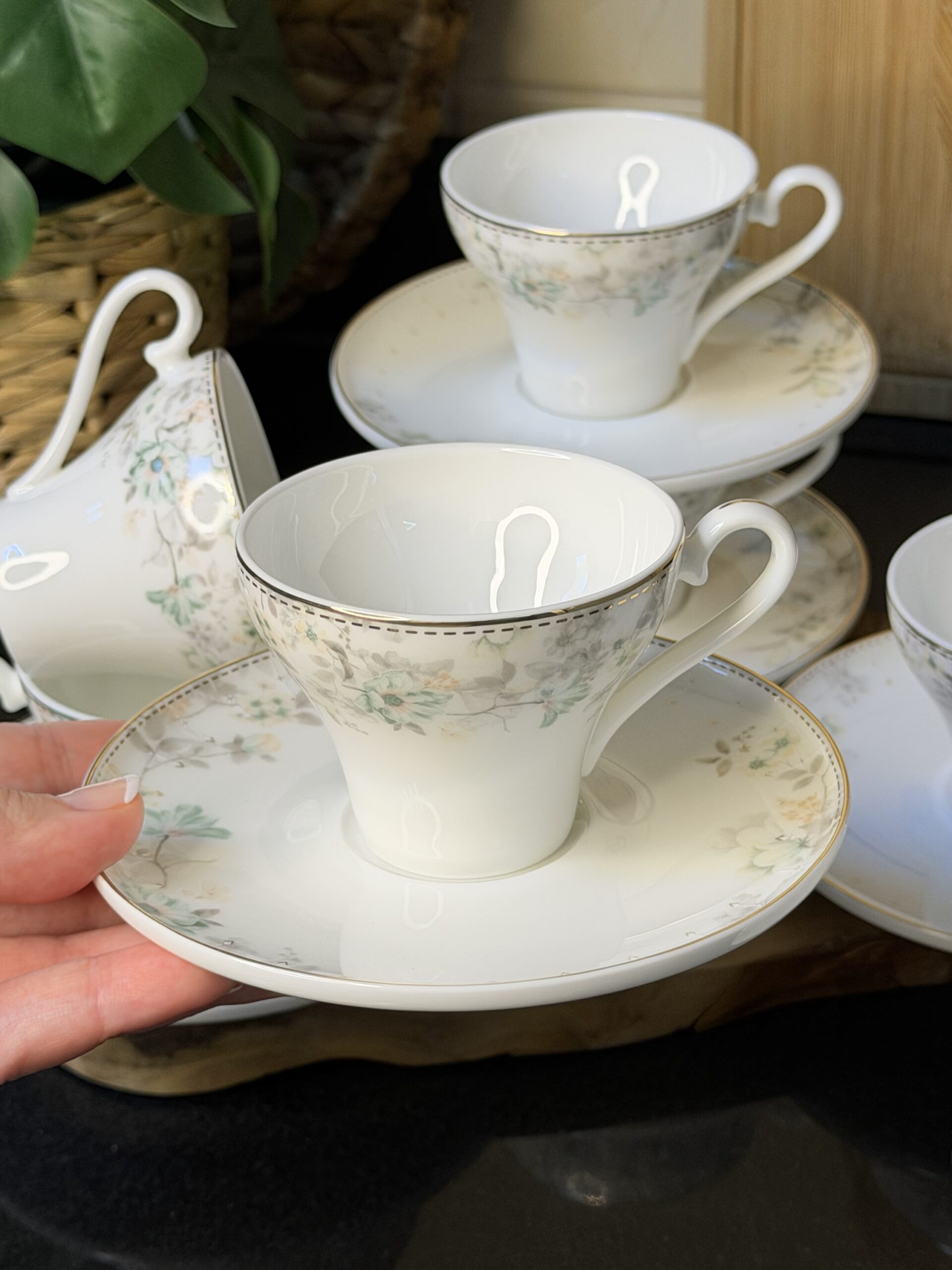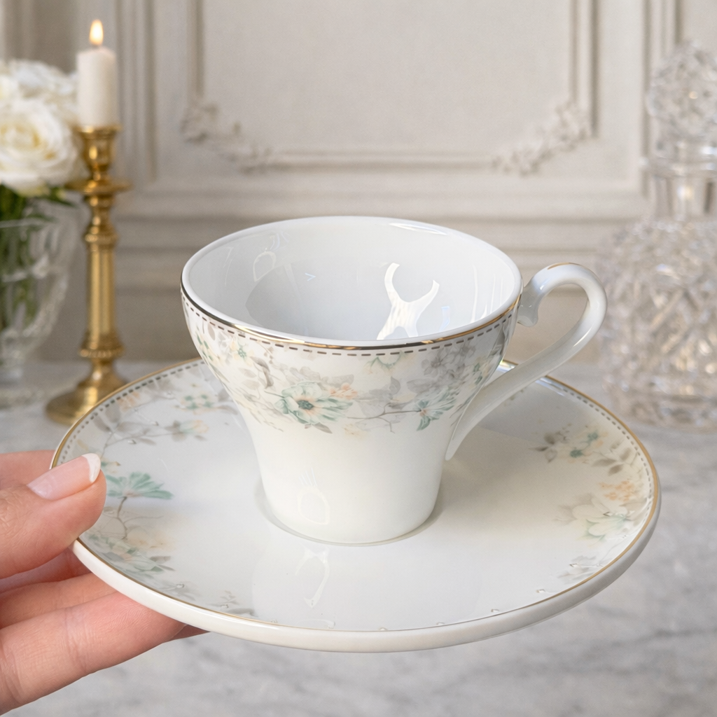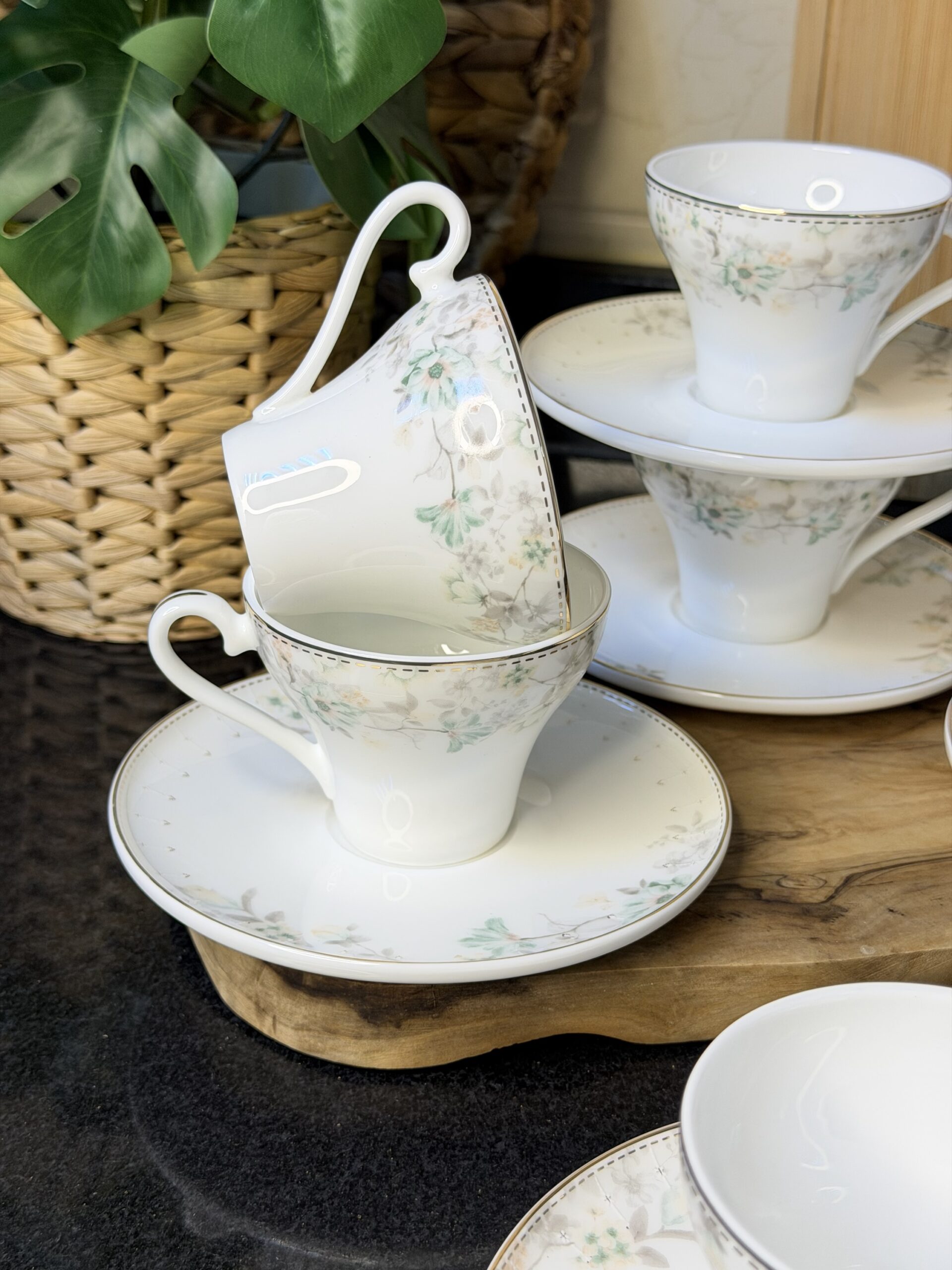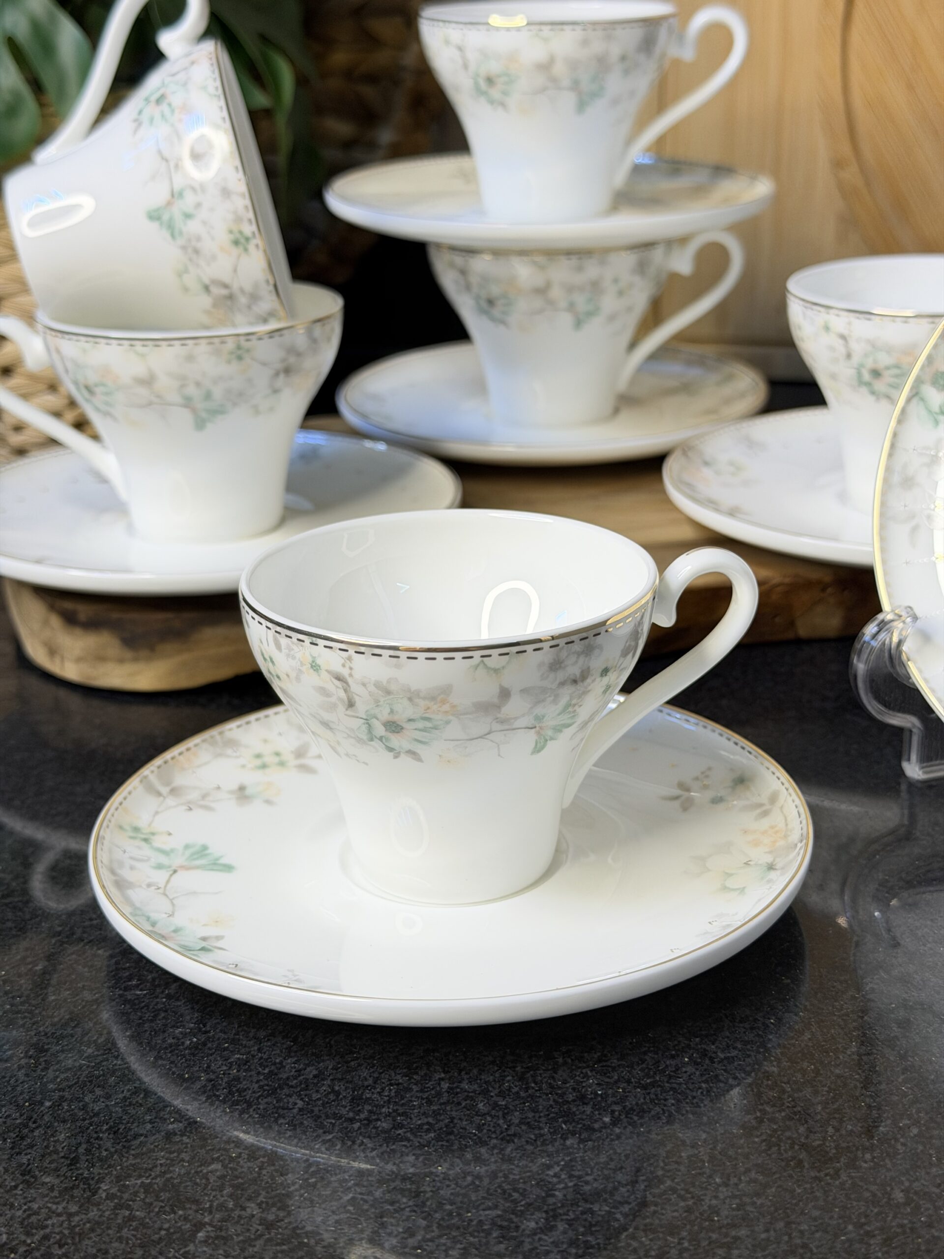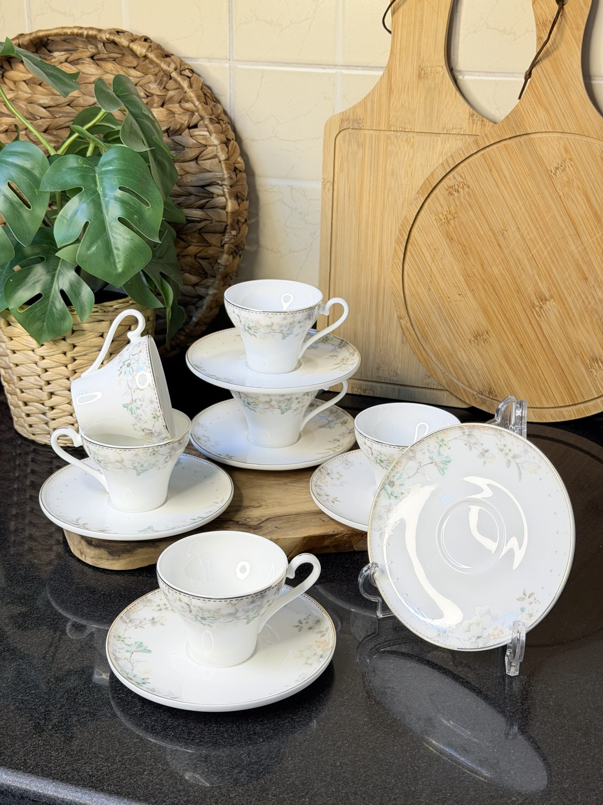 C عدد 6 فناجين قهوة مزينة بالورود الناعمة عالية الجودة